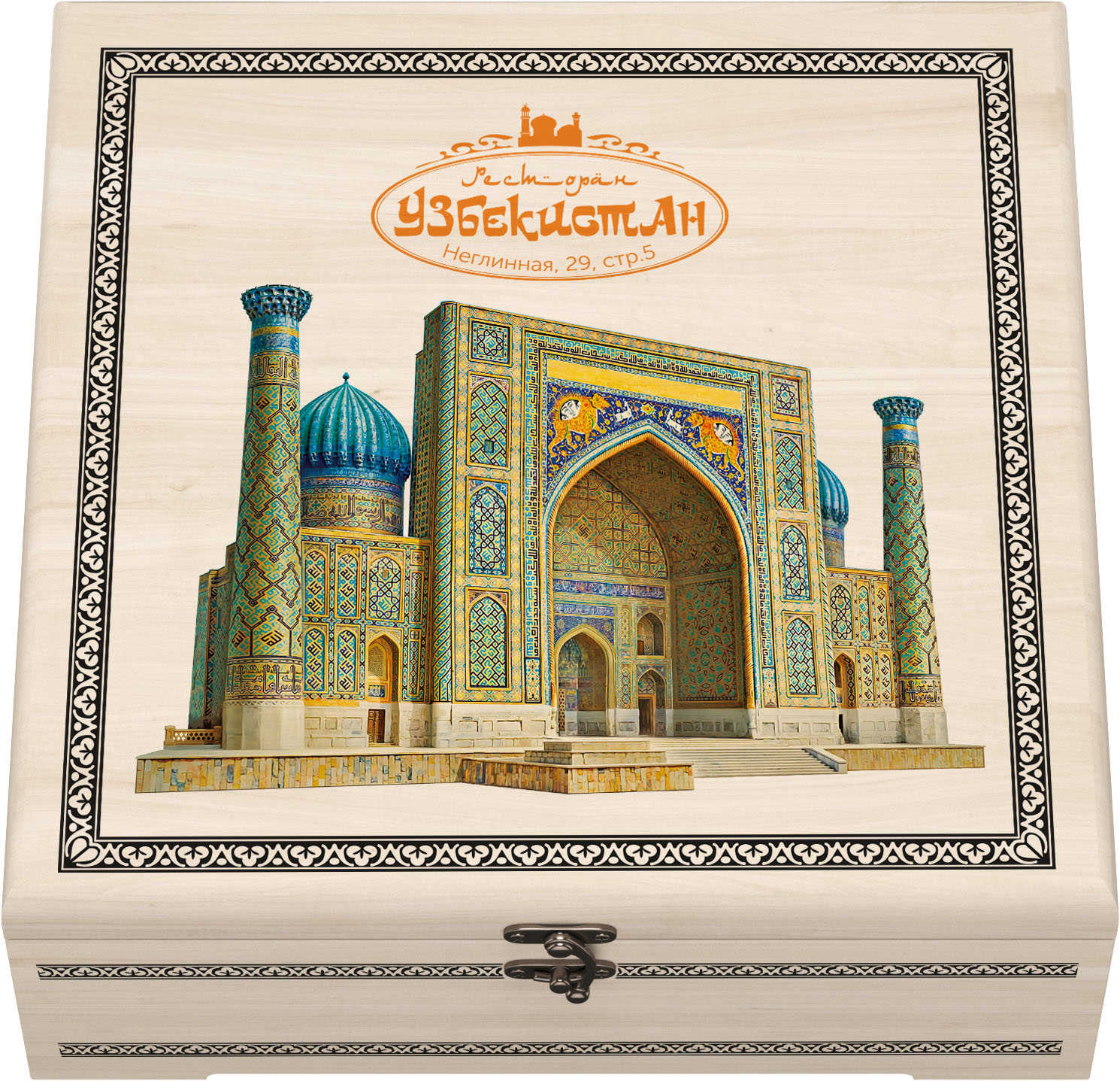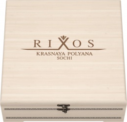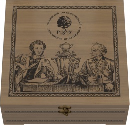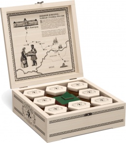 Тип вложения: тематический сувенир из России (матрешка, фарфоровые фигуры, изделия из бересты, шелковые платки и прочее), чайная посуда (чайный стакан, чайница), десертная группа из традиционных русских сладостей (мед, варенье, пастила, пряники, орехи, ленедцы, сухофрукты и прочее), предметы декора (свечи, текстиль)) с ограничением по размеру не более В70*Ш70*Г55 мм для размещения в качестве центрального элемента и не более В180*Ш70*Г55 мм для вертикального/горизонтального размещения. Предметы могут быть размещены как в декоративном мешочке, так и в доступном виде с подложкой из мишуры, либо для них может быть изготовлен ложемент. Тираж: не менее 20 штук.