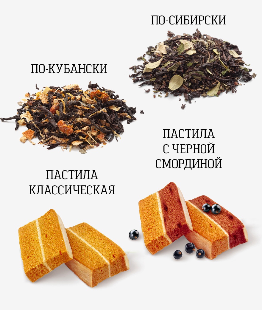 Черный чай «По-кубански», черный чай «По-сибирски», классическая пастила из антоновских яблок и пастила с ягодами смородины — вкус, который стал классикой.