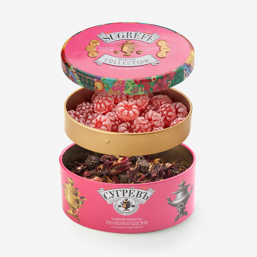 Чайный набор «ПО-ВОЛОГОДСКИ» — превосходный и запоминающийся подарок на все случаи жизни. Он состоит из уникального купажа фруктово-травяного чайного напитка и 100% натуральной леденцовой карамели со вкусом малины.