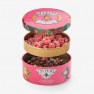 Карамель леденцовая со вкусом малины: сахар, патока, вода, регуляторы кислотности (лимонная кислота, молочная кислота), ароматизаторы идентичные натуральным, краситель: концентрат сладкого картофеля, редиса и яблока.