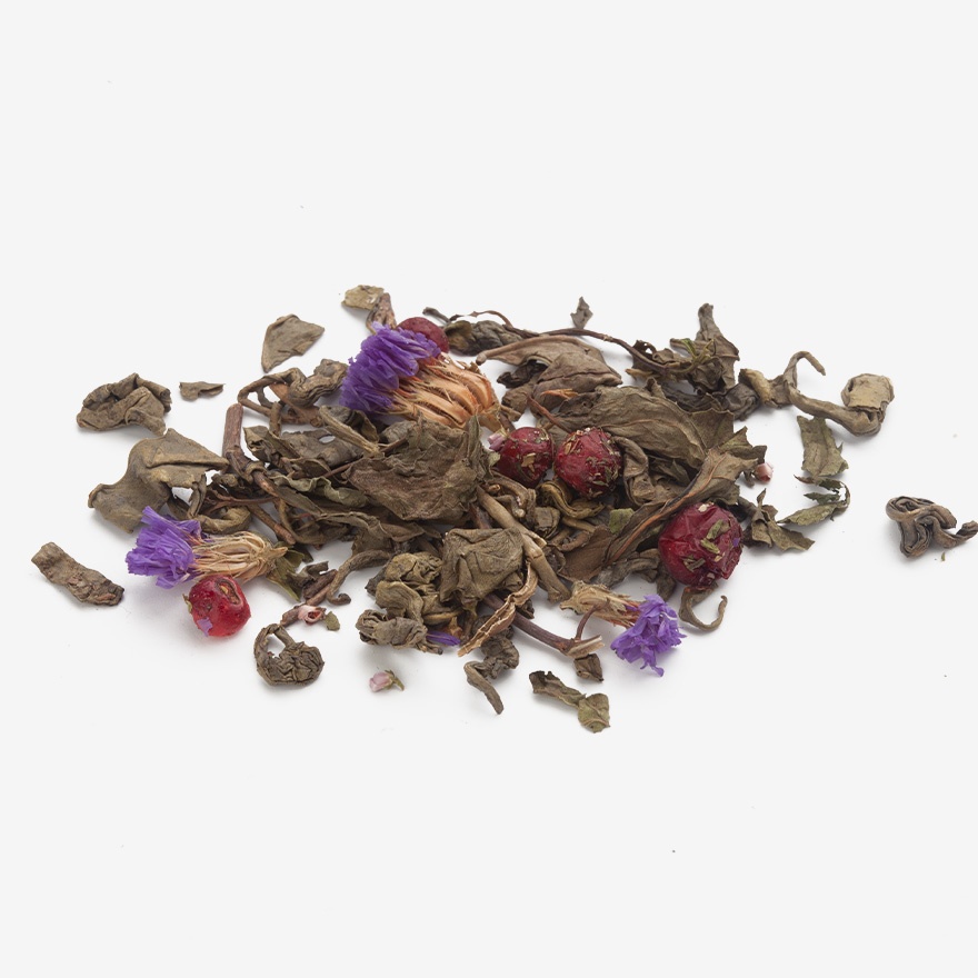 Чай зелёный, незабудка, вереск, рябина черноплодная, ягода вишни, мята.