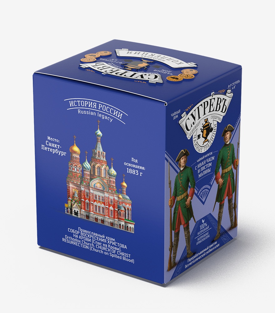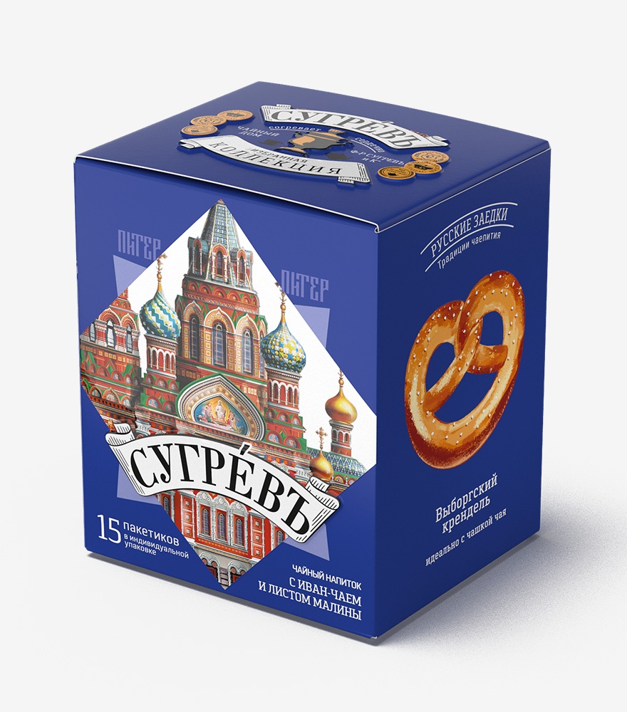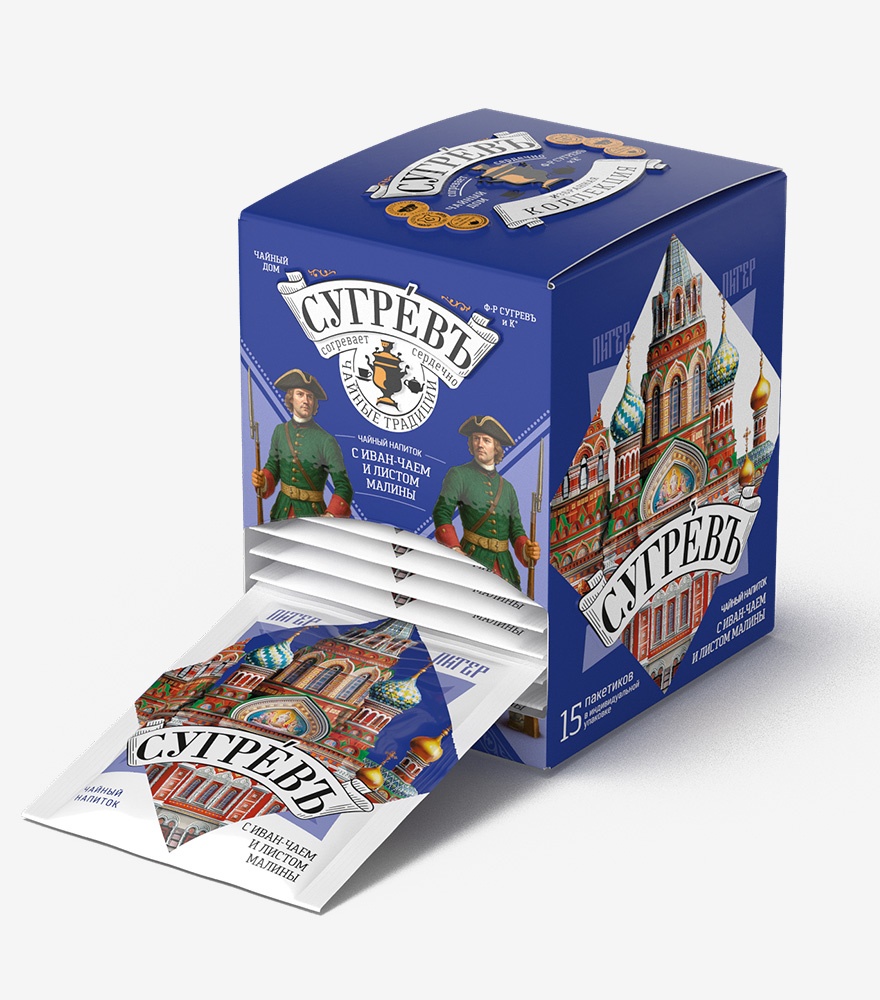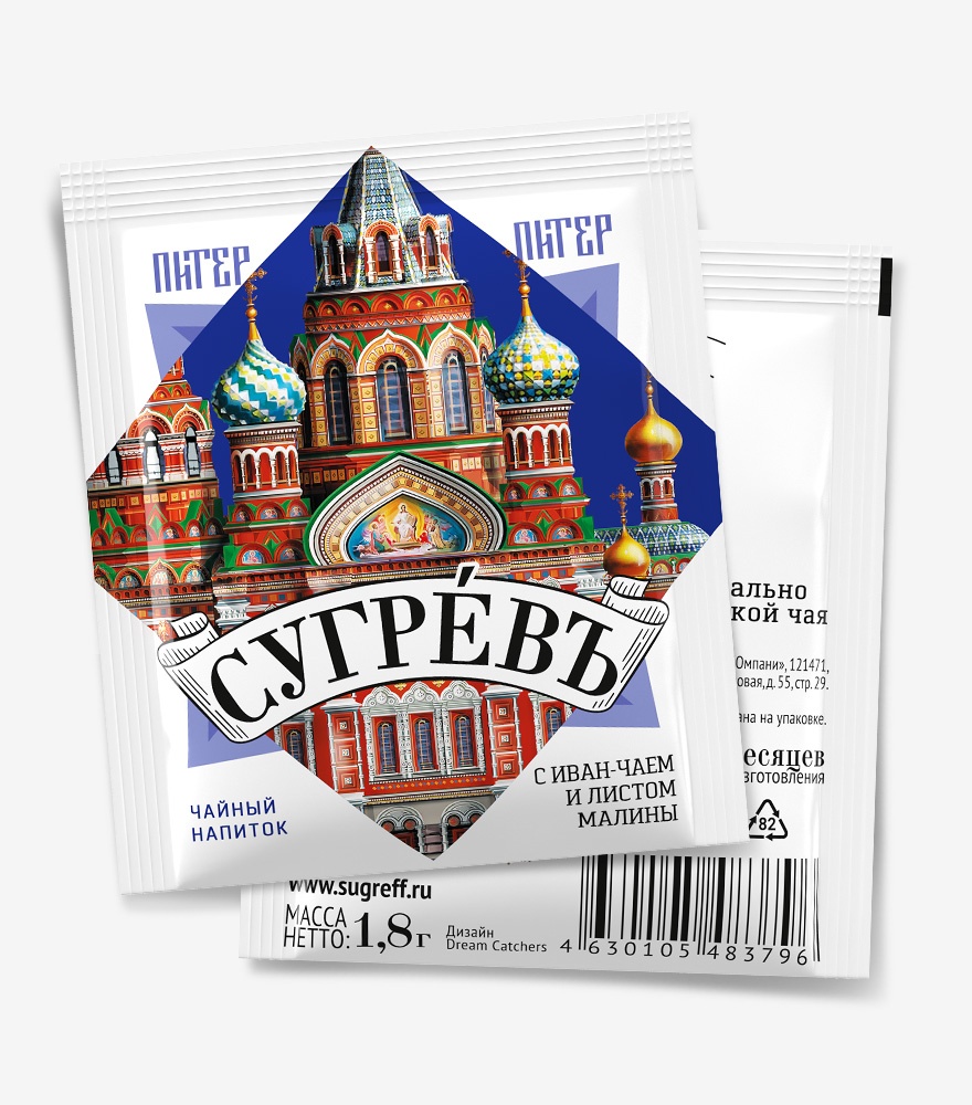 Каждый пакетик оформлен в фирменном дизайне с архитектурными мотивами Санкт-Петербурга — он словно приглашает на прогулку по Невскому проспекту или на чашку чая у камина в старинной квартире с видом на каналы.