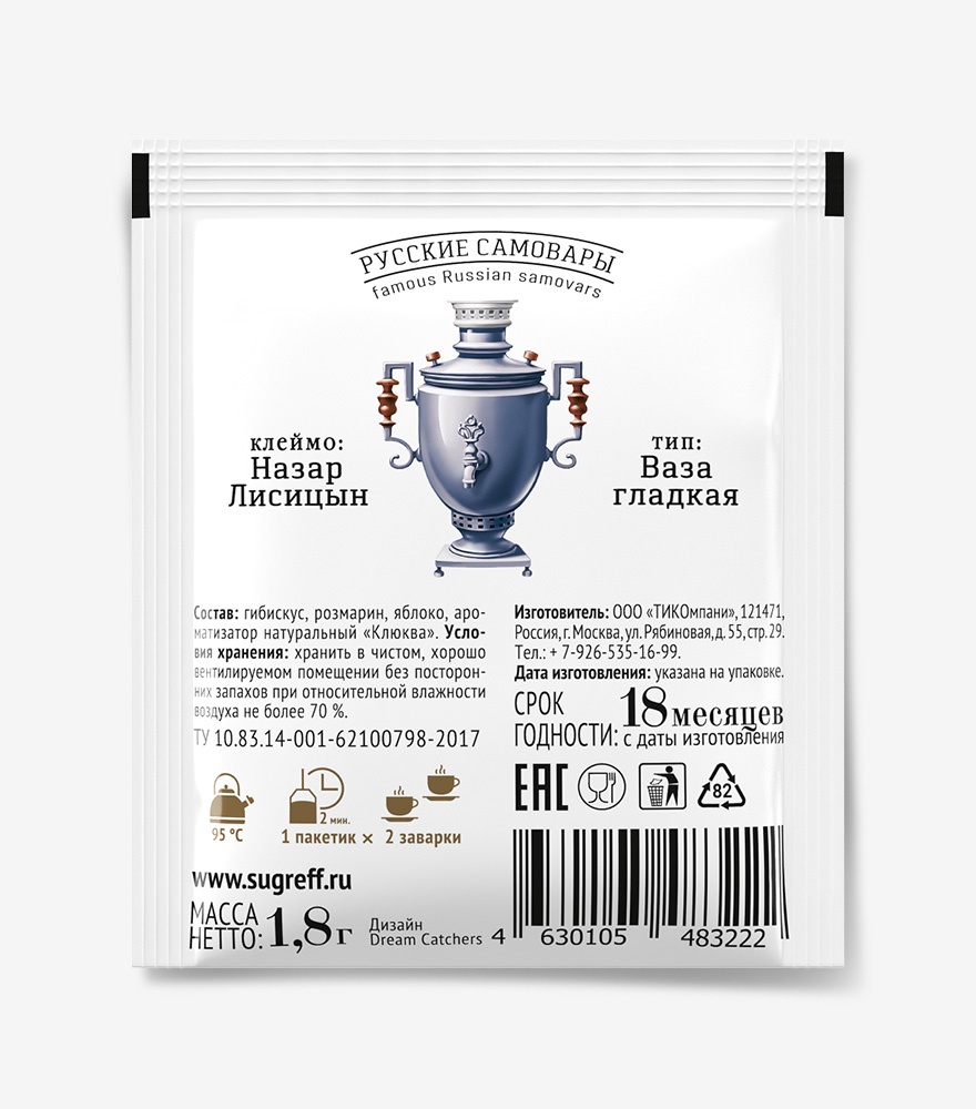 15 индивидуальных саше (перерабатываемый безопасный пакетик без металлической скобки)