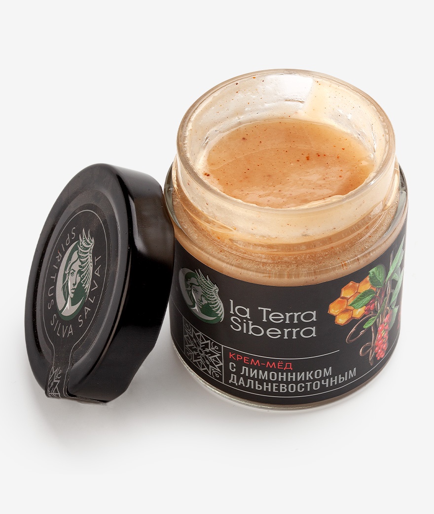 Крем-мёд с ягодами лимонника. Гармония дальневосточного мёда и силы ягоды пяти вкусов. Ягоды лимонника — природный адаптоген, который дарит энергию, повышает выносливость и укрепляет иммунитет. Они насыщены витаминами, антиоксидантами и силой тайги, которая бодрит и восстанавливает даже после самых тяжёлых дней.