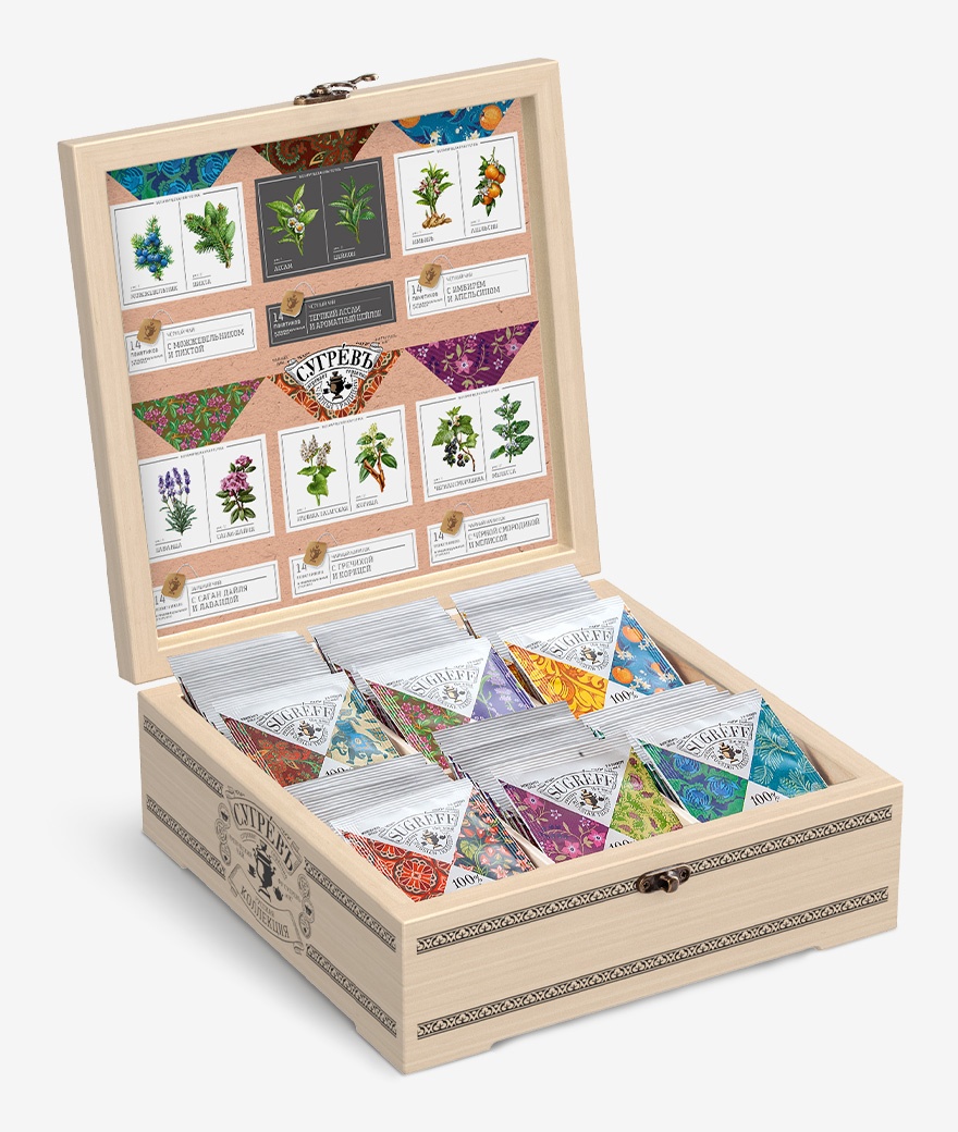 Набор многофункционален. Шкатулка с пакетиками будет эффектным и функциональным украшением вашей кухни или гостиной. В качестве чайного мини-дисплея она удобна для использования в офисе. Кроме того, набор является прекрасным подарком.