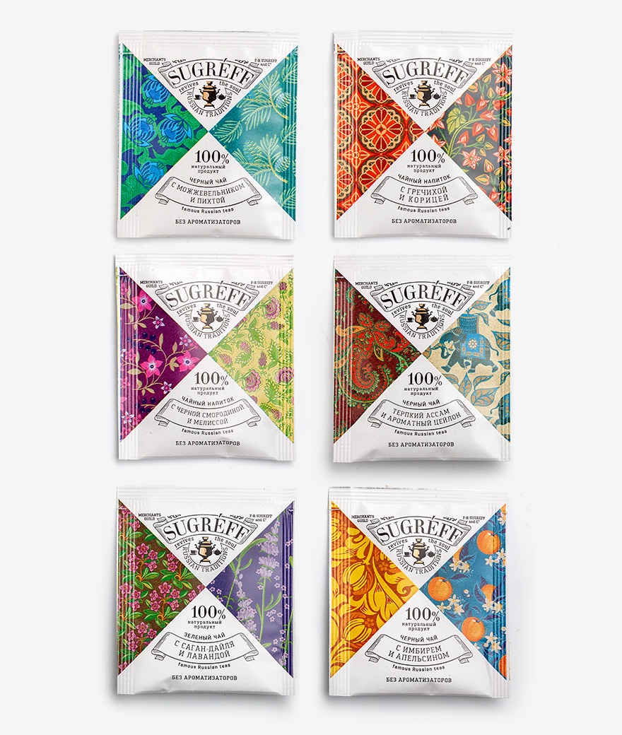 Набор представляет собой коллекцию из 6-и оригинальных купажей чая и чайных напитков в индивидуальных саше. В отличие от обычных пакетированных чаёв, наша продукция 100% натуральная. Яркие ароматы создаются благодаря естественному букету таких растений, как имбирь, апельсин, лаванда, пихта, можжевельник, чёрная смородина, мелисса и саган дайля.